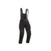 The waist is secured by a press stud and hook-and-bar system and there is a storm flap system on waist and leg closures, water-resistant pockets on the lower leg and also water resistant zips on all air vents. Cooling is delivered by a system of lock-open air vents. Extra comfort is assured by stretch panels (knee and waist) and exterior hip padding. Large adjustment panels on the lower leg facilitates different boot styles and there is heat resistant material on the inner leg panels, avoiding damage from engine or exhaust heat.
