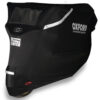 The cover is an outdoor cover which offers protection against rain, sun, snow and dust. It comes fitted with a PVC window to hold a solar panel charger.